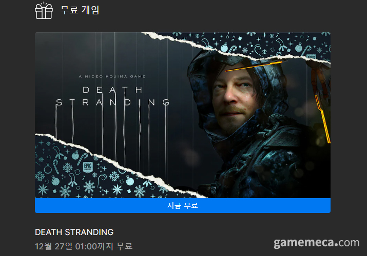 코지마 히데오 대표가 코나미에서 독립한 후 첫 선을 보여 비평가 및 게임 시장에서 비범하다는 평을 얻은 데스 스트랜딩을 27일 새벽 1시까지 에픽게임즈 스토어(https://store.epicgames.com/ko/free-games)로 받을 수 있다. 이번 무료 배포는 에픽게임즈 스토어가 16일부터 진행 중인 연말 세일 일환으로 진행 중이다.