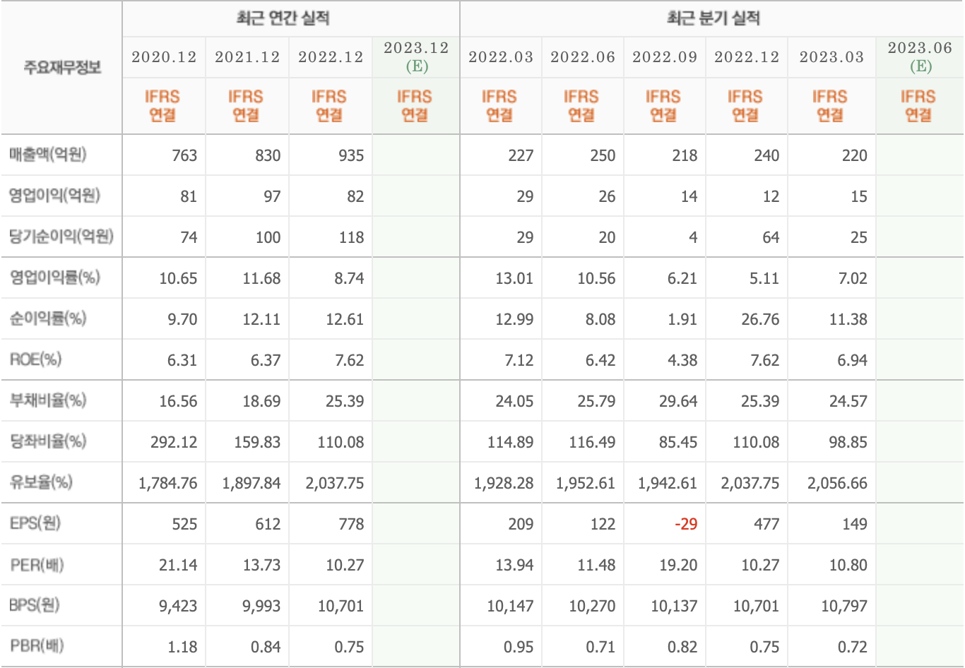 - 대봉엘에스의 당기순이익 기준으로 보면 매출액이 증가 하면서 당기순이익도 지속적으로 증가하였으며, 2022년에는 ROE가 7.62%를 기록하면서 전년 대비 증가 하였습니다.