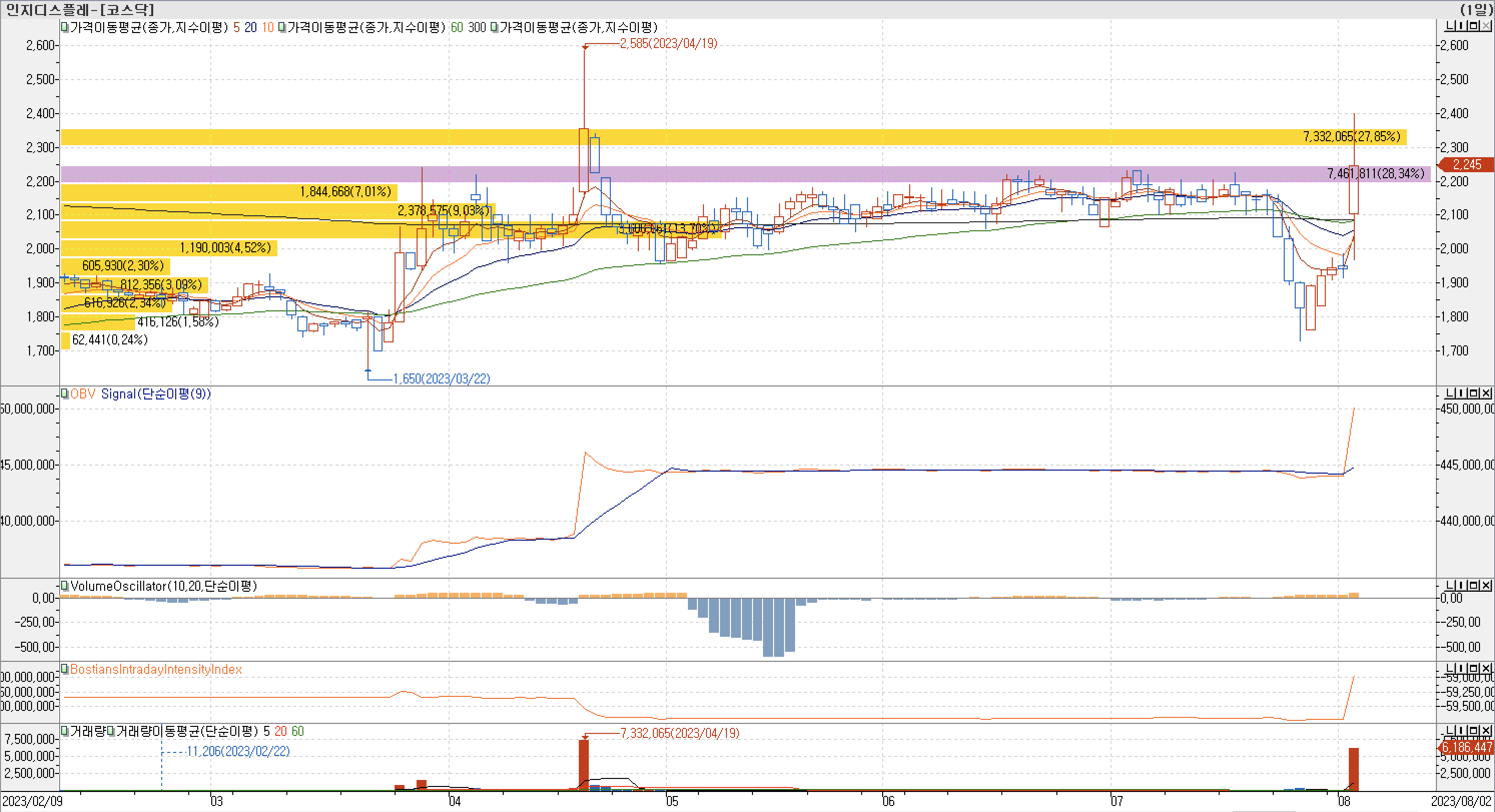 인지디스플레이 매물대 차트